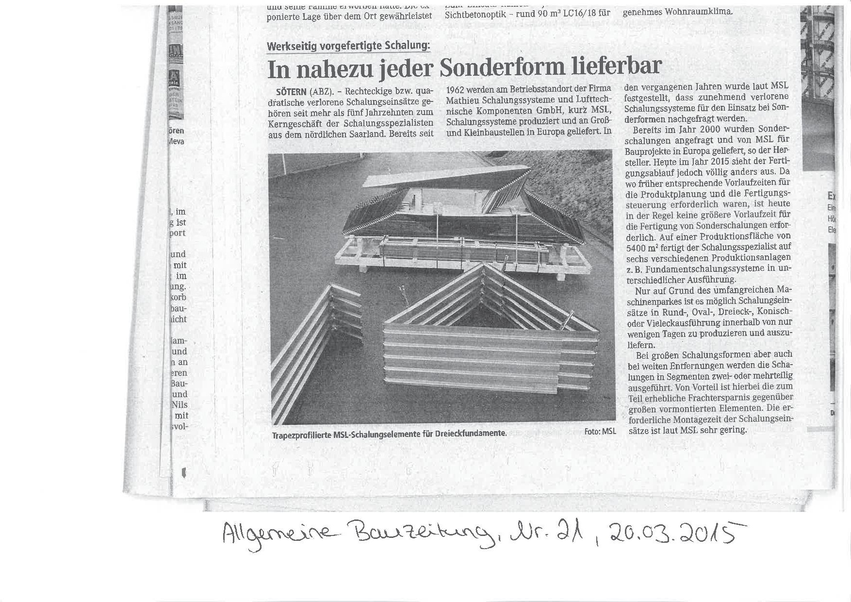 Lesen Sie hierzu den Artikel aus der Allgemeinen Bauzeitung, Ausgabe Nr. 21 vom 20. März 2015.