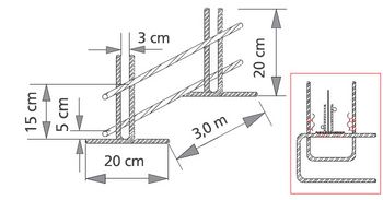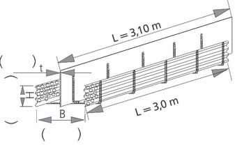 Mit fünf Bügeln, unten offen, Elementlänge 3,0 m.