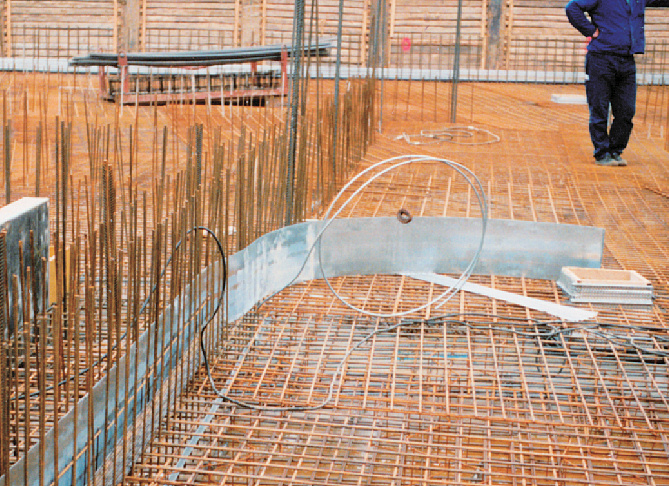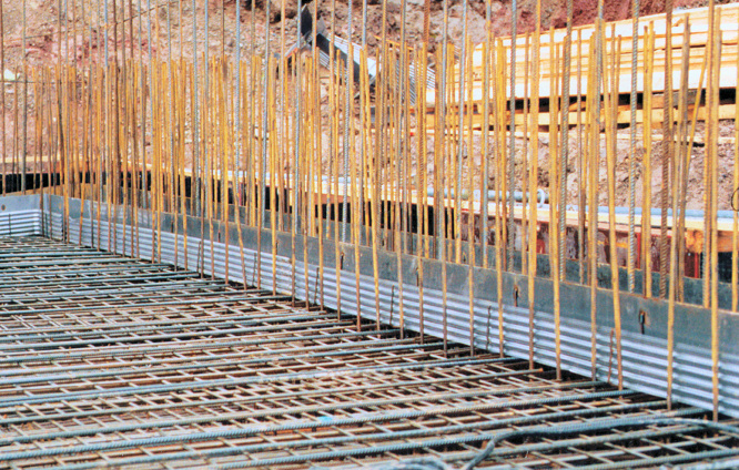 Das 3,0 m lange Fugenblechführungselement besteht aus 4 Fugenblechhaltern, die durch 2 Längseisen fest miteinander verbunden sind. Die losen, wellprofilierten Lochbleche werden an der aufgehenden Bewehrung befestigt. Das Fugenblech wird bauseits in die Fugenblechhalter eingeführt und hierdurch in der Lage sicher gehalten.
